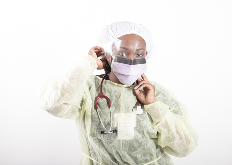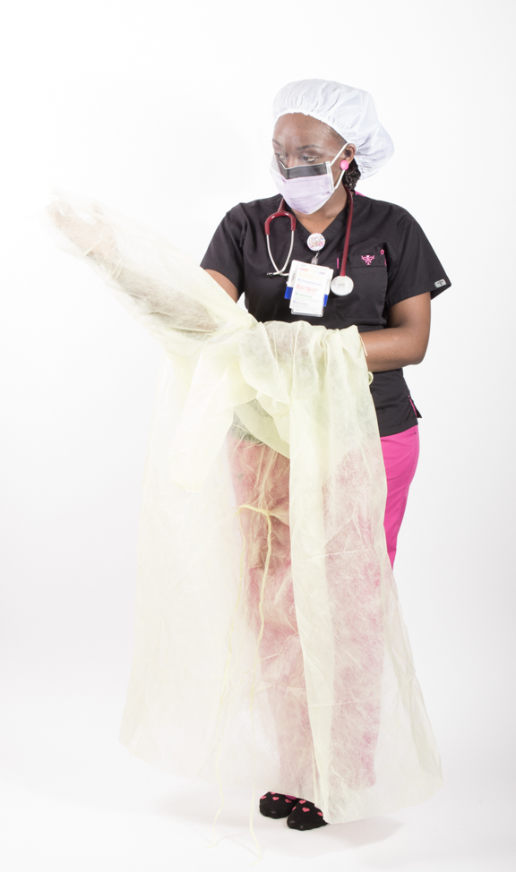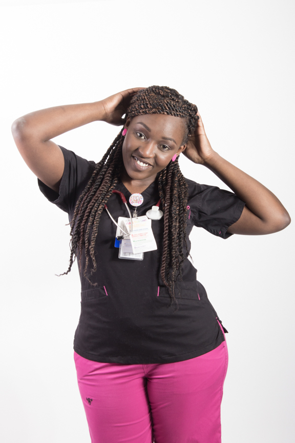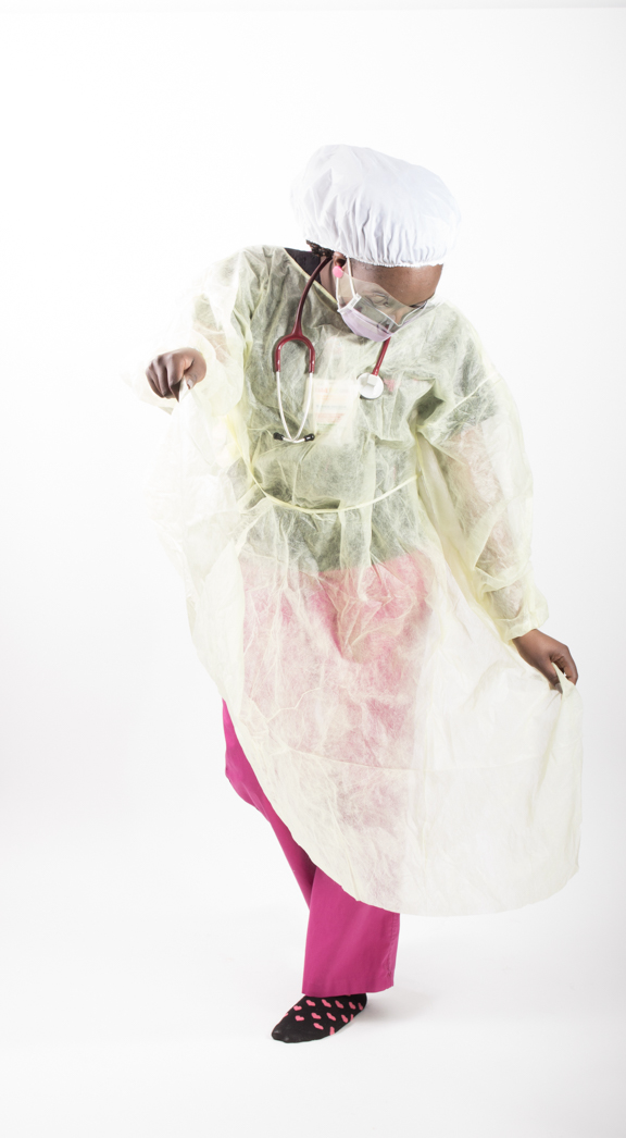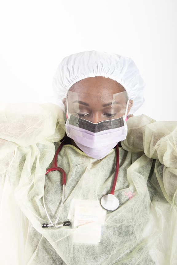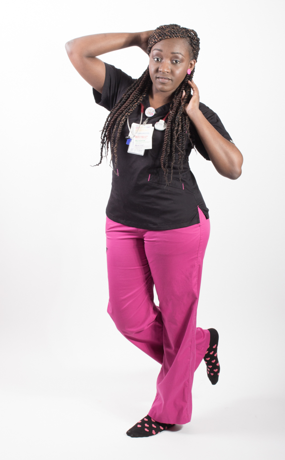 The second part of the shoot we decided to make it a little more practical and we included some more daily “tools of trade” pieces – protection gear. I can’t believe I still had the gown and mask from nursing school- yes! from all those practice lab hours and they survived 🙂 We also added one of Joash’s light covers (for lack of a better word) to cover my braids. I wore another set of color blocked Med Couture scrubs that I love. To everyone working in the healthcare field, continue giving and wishing you lots of blessings in your journey.
