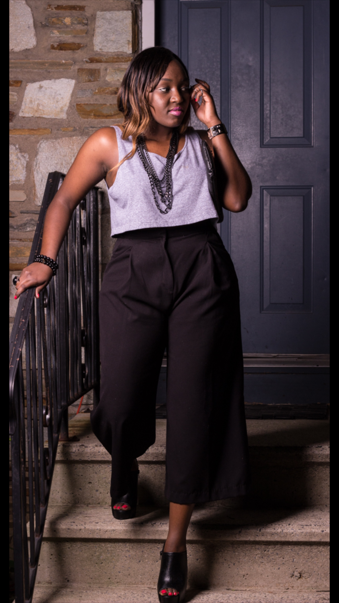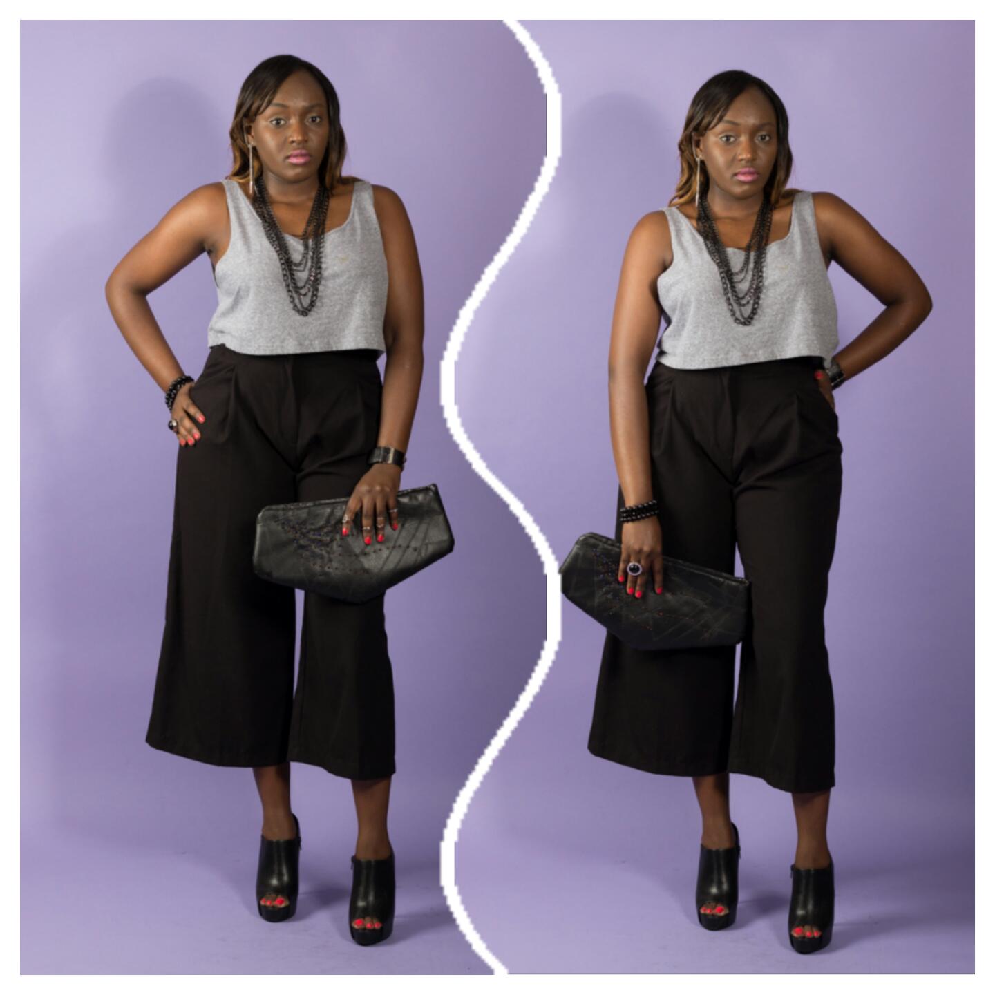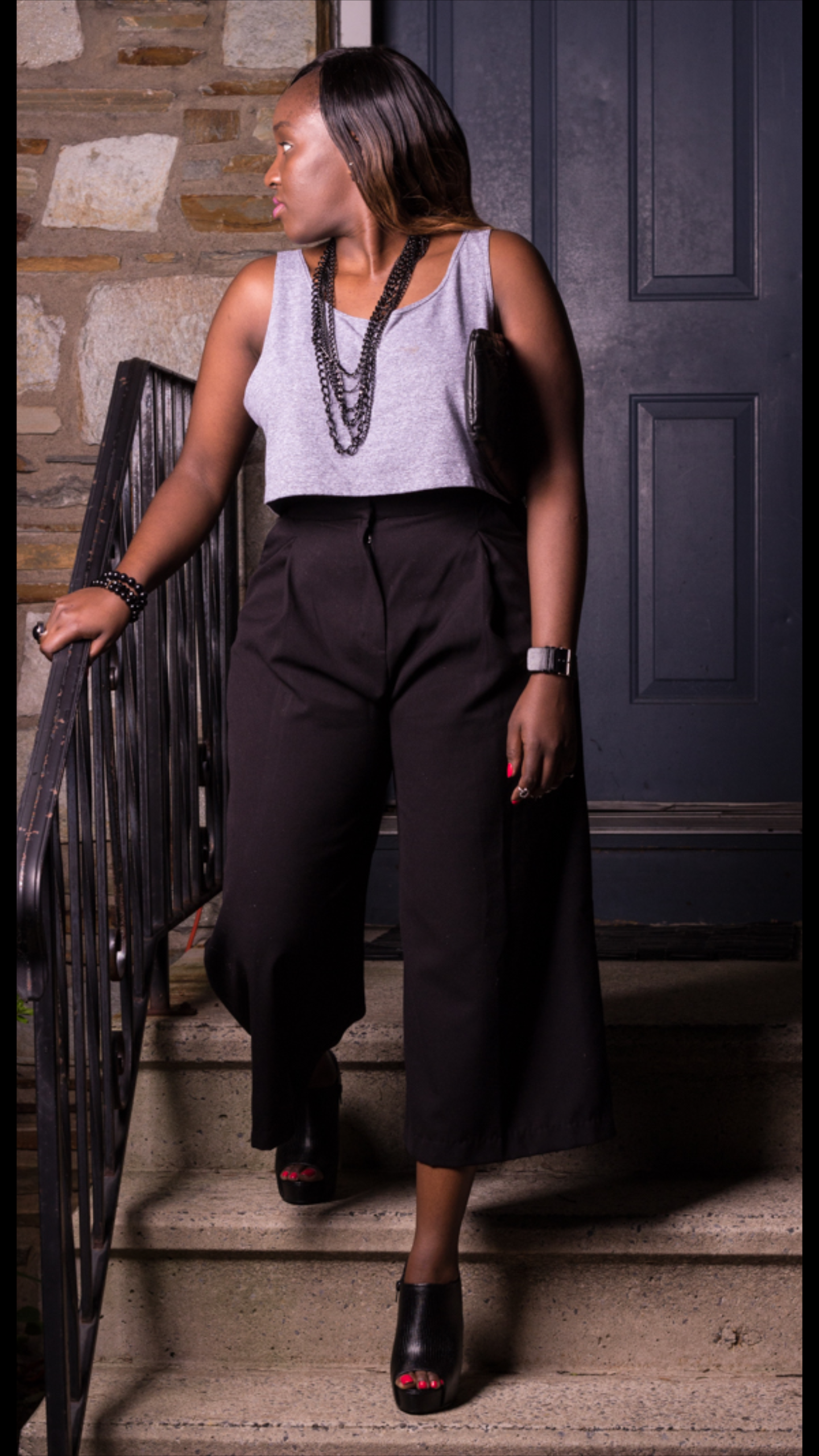 Vest- Gifted (Store in Atlanta), Culottes- H&M, Shoes- Steve Madden, Clutch- Achie Otigo (My designer in Nairobi, Kenya) Photography by Joash~ NxT LvL Imagery.